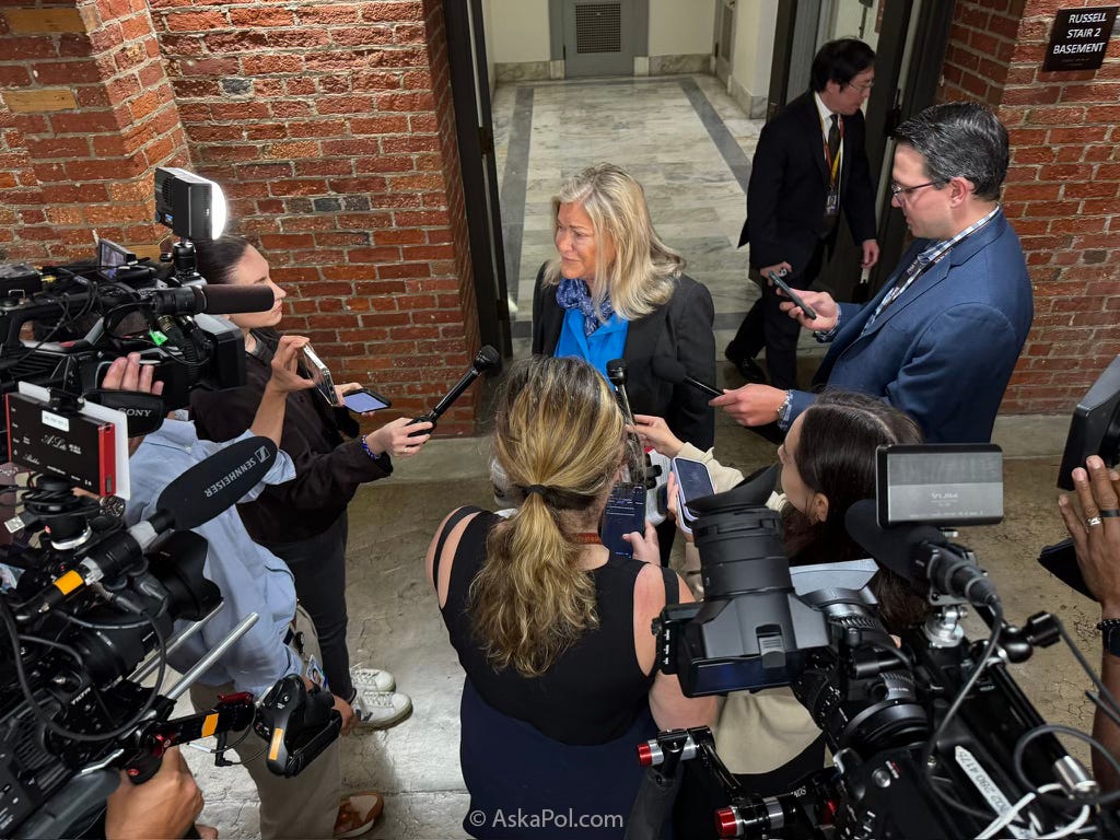 SCENE: Ask a Pol’s Matt Laslo is walking in the basement of the US Capitol when he hears Sen. Cynthia Lummis’ voice behind him as she exits an elevator.