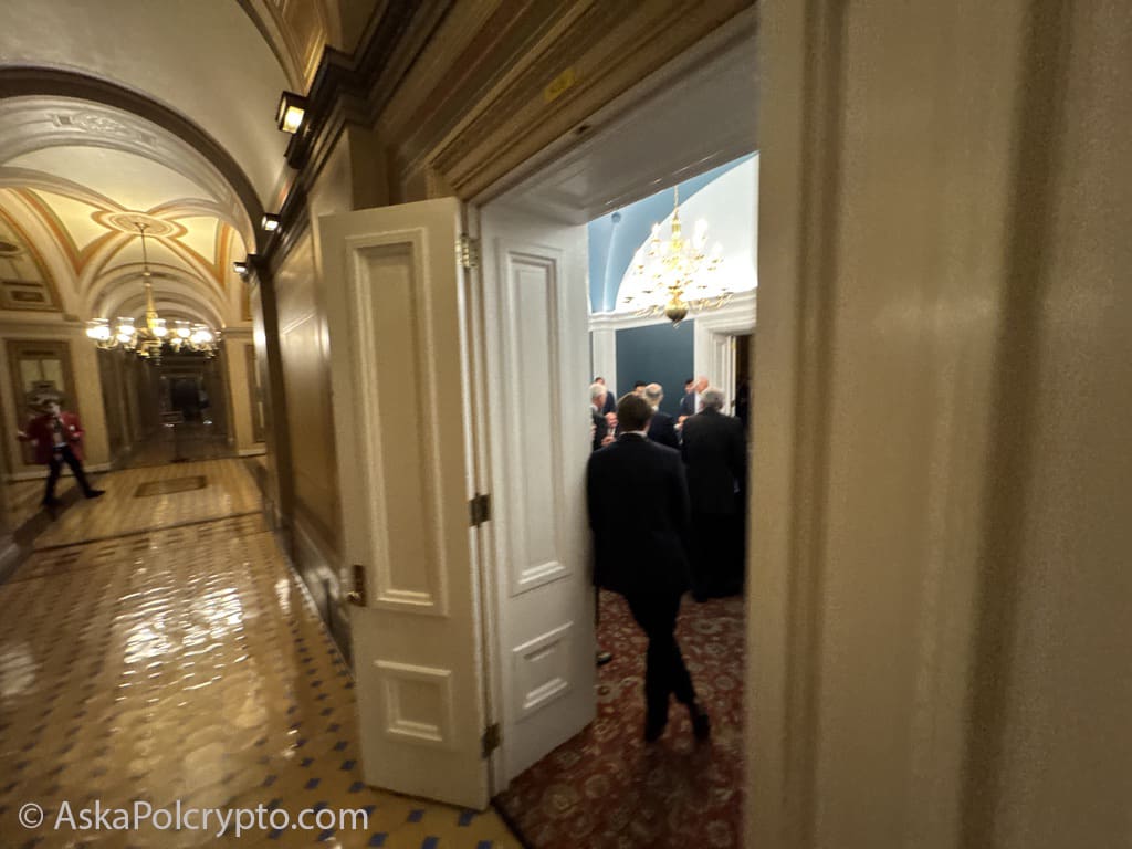 Earlier, Laslo spotted a name placard for Lummis in a rare hearing taking place on the 1st floor of the Capitol — in a room directly underneath the Senate chamber — so Ask a Pol proceeds to play escort to the senator while also bouncing crypto questions off her…