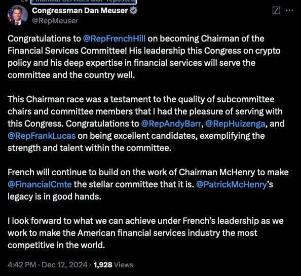 Rep. Patrick McHenry (R-NC) — Chair, Financial Services Committee
