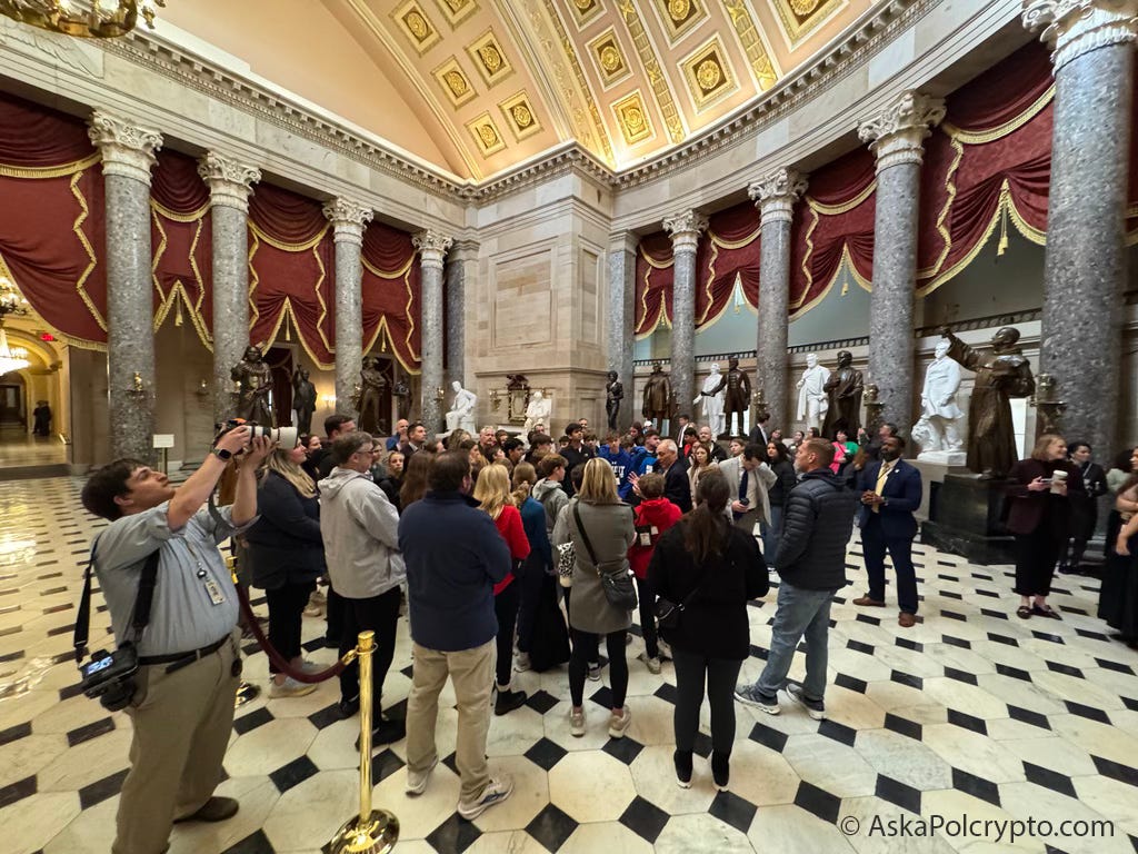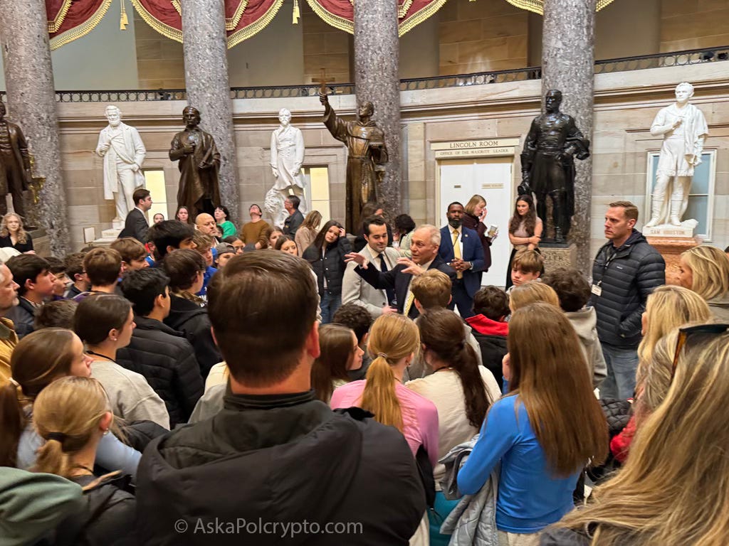 SCENE: After passing by a handful of congressional reporters staking out Speaker Mike Johnson’s office, Ask a Pol’s Matt Laslo enters the Old House Chamber where he finds Majority Leader Scalise talking to a group of his constituents.