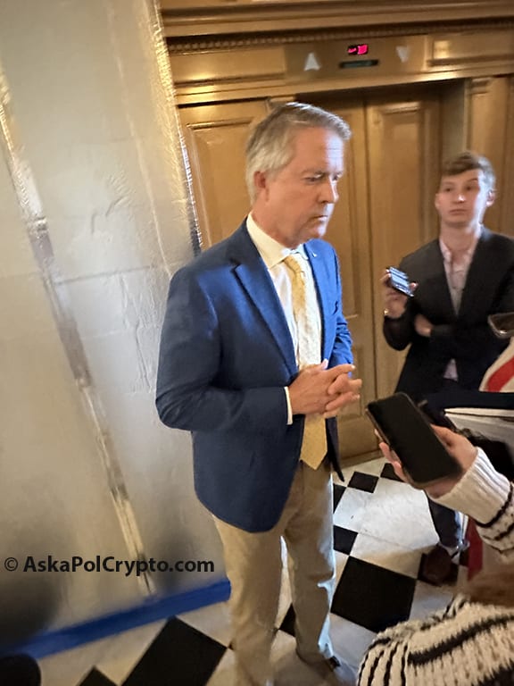 SCENE: Ask a Pol’s Matt Laslo runs into Sen. Roger Marshall in the basement of the US Capitol as he’s making his way to the Senate floor, so he hops an elevator with the senator…