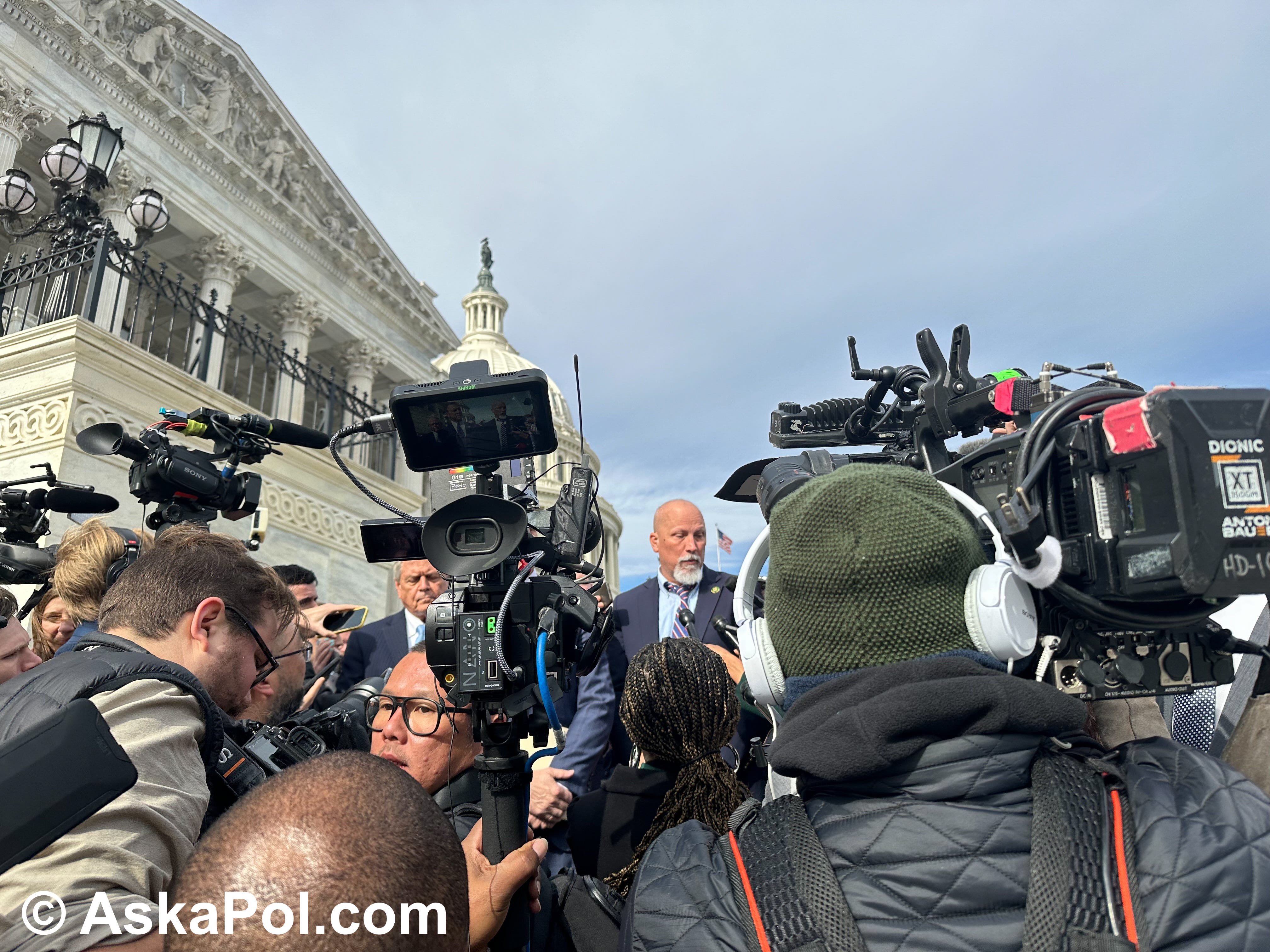 SCENE: After helping defeat the Rule to move forward with debating the Senate-passed stablecoin measure, the GENIUS Act on Tuesday afternoon, Rep. Chip Roy explains his vote on the Capitol steps.